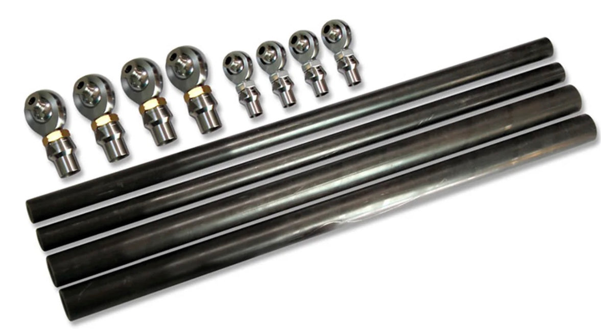 All the tube needed to customize your own 4-link setup. The heat and cryogenically treated chromoly rod ends are the strongest and longest lasting on the market. The included tube adapters feature machined wrench flats for easy adjustments and tightening and conform to the outer diameter of the tubing it welds to. The included stainless steel high misalignment spacers allow for maximum articulation in the rod end.