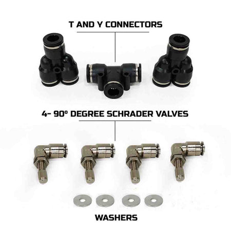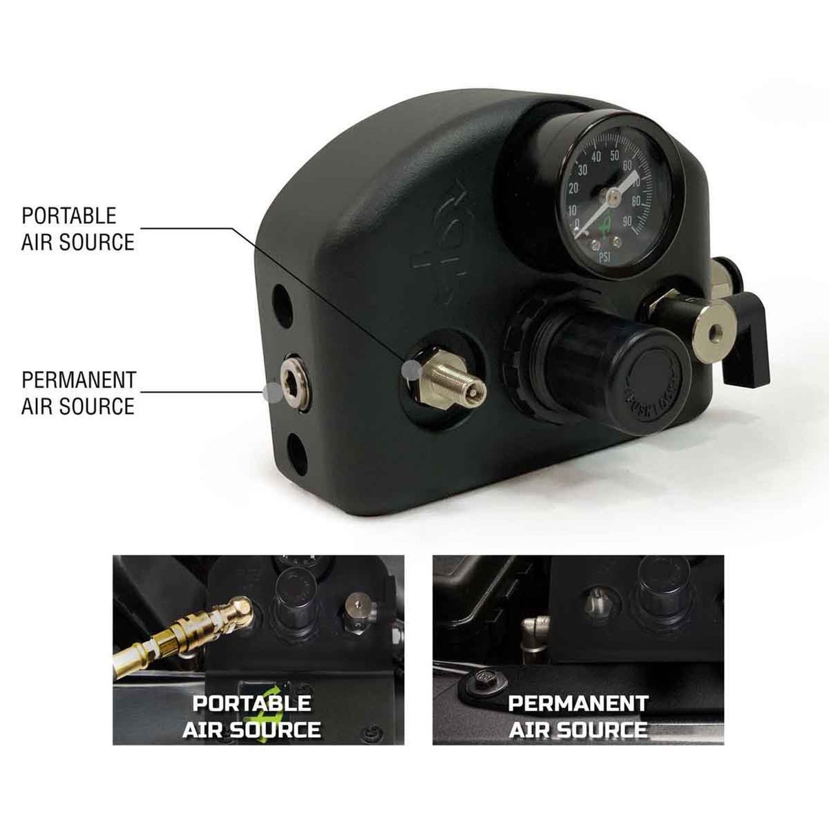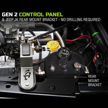 Introducing our Gen2 Air Delivery System (ADS) Jeep Wrangler & Unlimited JK & JKU rear engine mount to work with an Spod that allows you to inflate or deflate all four tires simultaneously which makes managing tire air pressure quick and easy. Our system can manage air through an on-board permanent air source with dedicated air inlet or through portable air pump that can attach through an external Schrader valve. Each kit comes complete with DOT approved 3/8”air line throughout the system, whips with quick connect chucks with our Betty Bar feature, ADS control box with air regulator and 90-degree Schrader valves. Our Gen2 system is designed specifically for your application with pre-cut hoses and quick connect fittings to make the installation fast and easy.