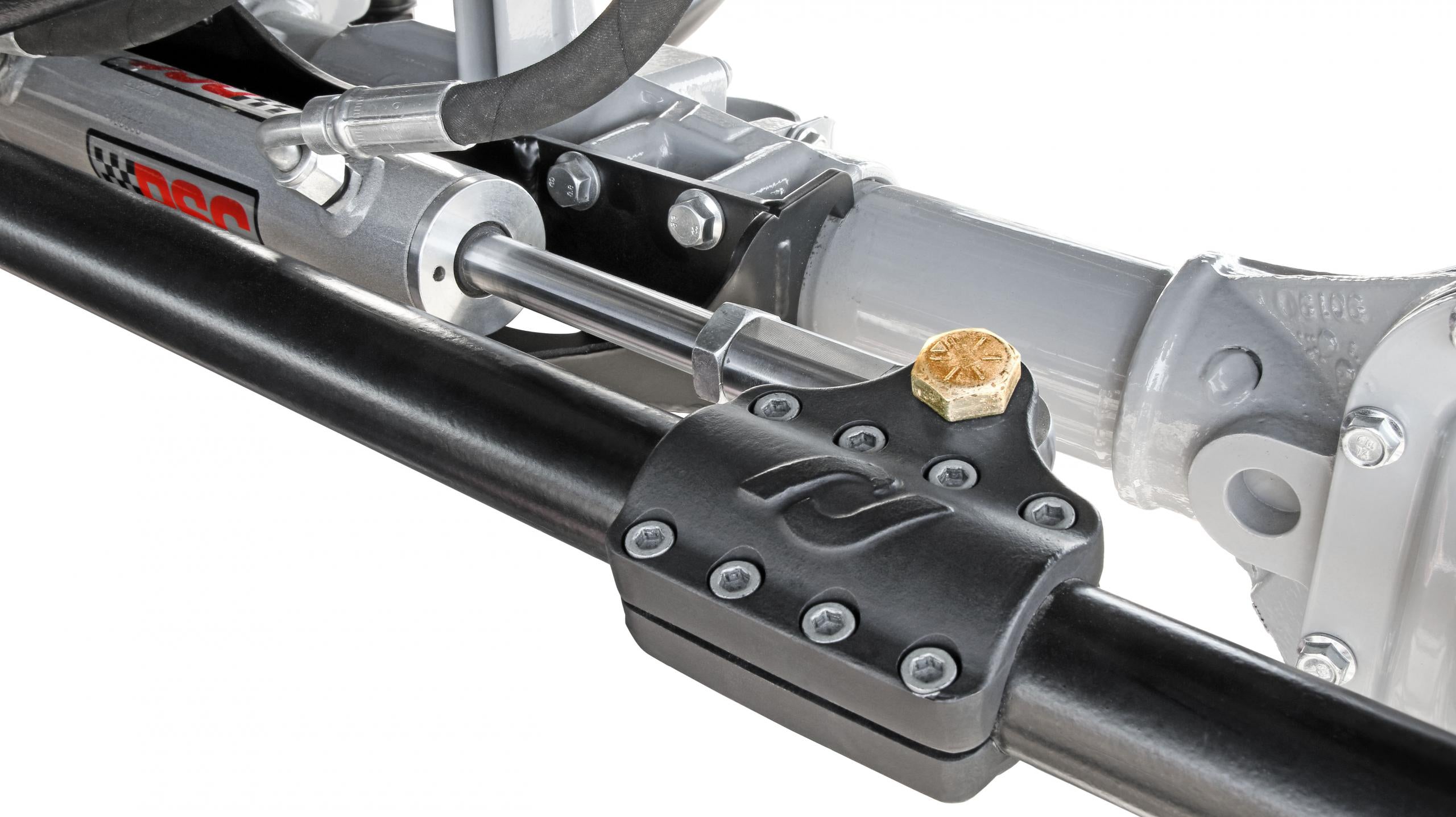 Additionally, kit includes fully integrated trac bar relocation and ram assist mounting bracket that raises your trac bar 2 in. and corrects it's geometry as well as giving you a solid mounting point for your hydraulic steering assist ram.