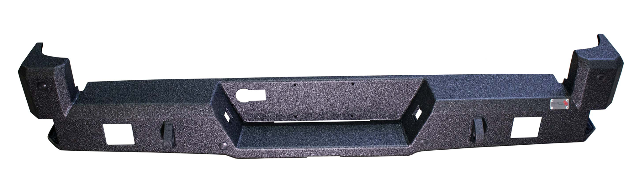 This robust rear bumper is constructed from sturdy steel and coated with a textured black powder finish, ensuring it can endure the demands of both on and off-road adventures.