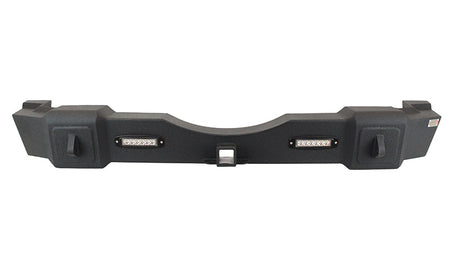 This rugged addition not only fortifies the rear of your Jeep but amplifies its versatility. Integrated into this bumper are two LEDs that brighten up those low-light situations, doubling as backup or auxiliary lights. Thoughtfully recessed, these lights stay protected against potential trail damages.