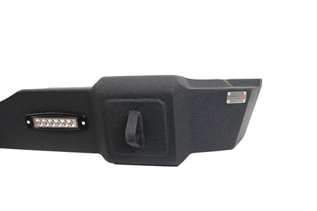 But it's not just about the illumination. Embedded into the bumper's structure are welded d-ring shackles, accompanying two d-rings. This pairing ensures that right out of the box, you're ready for any off-road challenge or towing task. Adding to its robustness is a two-stage black textured powder coat that guards against the elements, offering both durability and a touch of rugged sophistication.