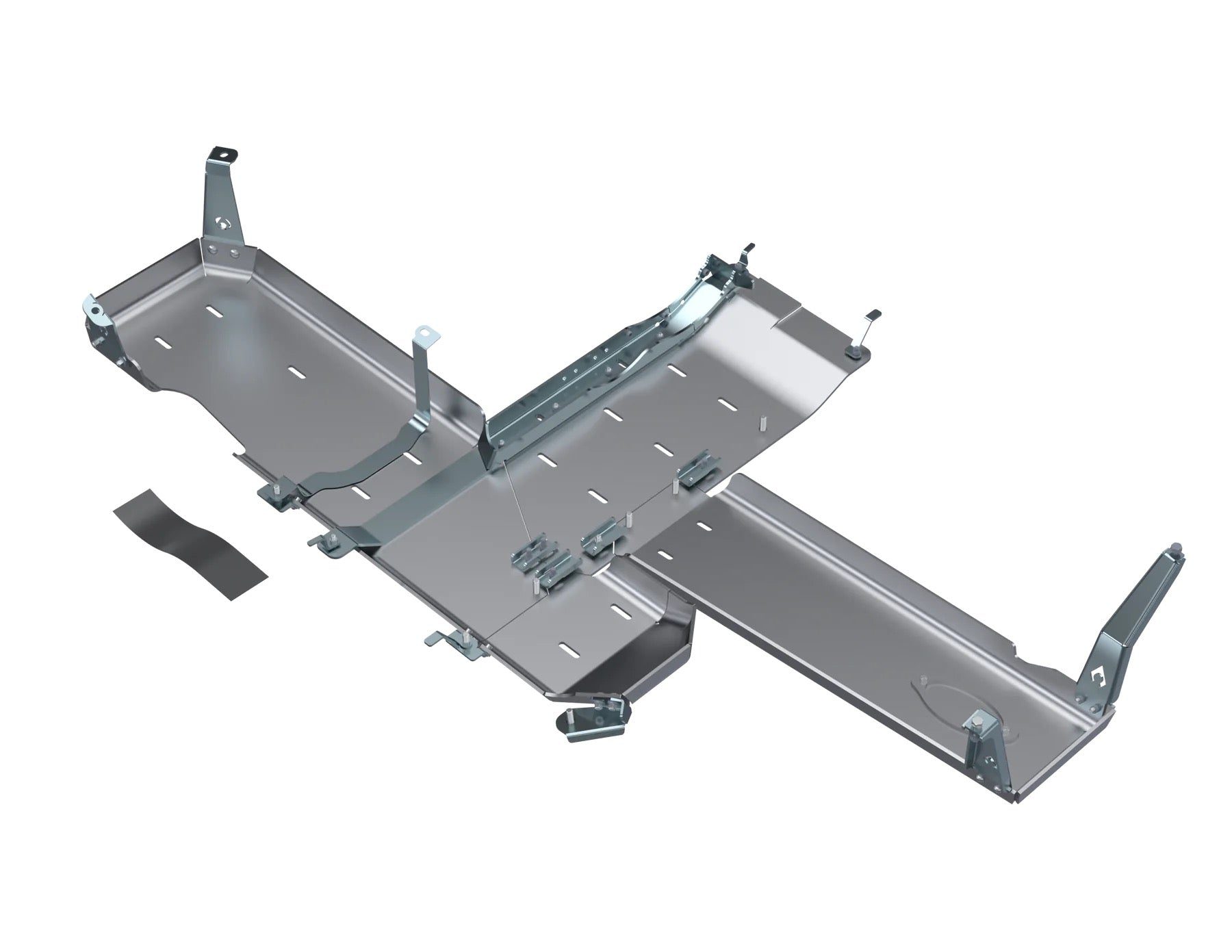 Introducing Artec Industries' new Alpha Series Bellypan System, engineered for "unrivaled" heavy-duty strength and quality in off-road protection. Tailor your armor with our customizable skid plate, designed to suit your unique demands. Available for the Fuel Tank and Transfer Case. Our Alpha Series Bellypan System is meticulously crafted from 1/4" thick 6061 T6 heat-treated bare aluminum skids and 3/16" zinc-plated steel brackets, delivering extraordinary durability for any terrain. Precision CNC cut and formed, our Bellypan System seamlessly integrates with factory components to provide the ultimate shield for your vehicle's underbelly. Embark on off-road adventures with confidence and conquer even the roughest terrains, knowing your vehicle is safeguarded by the unparalleled protection of Artec Industries' Alpha Series Bellypan System - the leader in off-road armor.