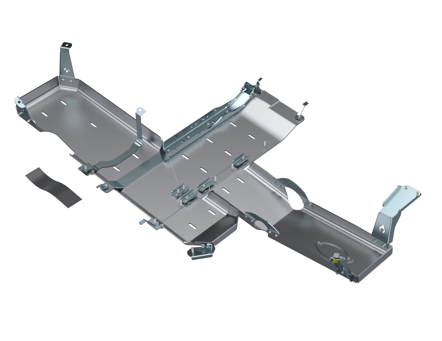 Introducing Artec Industries' new Alpha Series Bellypan System, engineered for "unrivaled" heavy-duty strength and quality in off-road protection. Tailor your armor with our customizable skid plate, designed to suit your unique demands. Available for the Fuel Tank and Transfer Case. Our Alpha Series Bellypan System is meticulously crafted from 1/4" thick 6061 T6 heat-treated bare aluminum skids and 3/16" zinc-plated steel brackets, delivering extraordinary durability for any terrain. Precision CNC cut and formed, our Bellypan System seamlessly integrates with factory components to provide the ultimate shield for your vehicle's underbelly. Embark on off-road adventures with confidence and conquer even the roughest terrains, knowing your vehicle is safeguarded by the unparalleled protection of Artec Industries' Alpha Series Bellypan System - the leader in off-road armor.