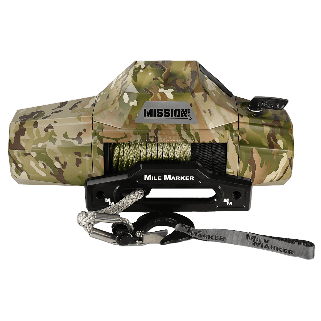 Mile Marker is proud to bring the Military grade 12-volt electric winch – known as the Mission Series Winch - to your truck, SUV, Jeep, or Bronco! The US Military has trusted our 12v electric winch for over a decade and now you can own one - fully customized for the best look! The Mission Series winch is the #1 winch to get you unstuck. With easy-to-operate mechanics & an optional wireless remote, you can't go wrong with a Mission Series winch on your vehicle. Attaching the Mission Series winch to your vehicle has never been easier with our standard 4-bolt pattern.